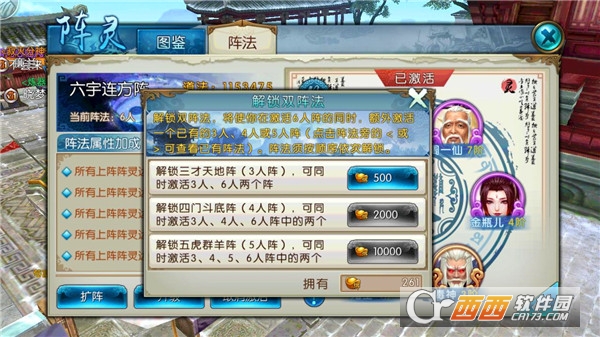 ②第二步,在以上基础上又花费了2000绑定元宝,此时此刻可以同时使用4孔阵+6孔阵。