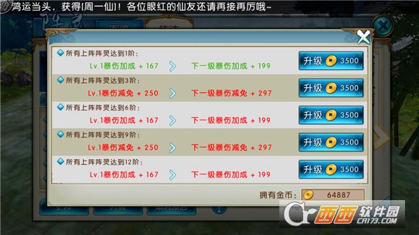 升级阵灵需要花费1.25w元宝,带来约80W左右的道法提升。