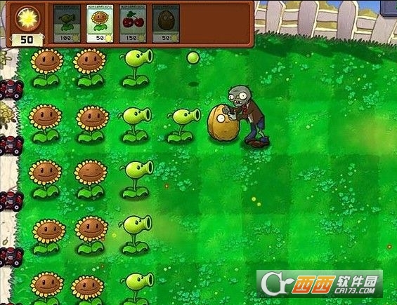 还是没什么难度,先沉住气,别管僵尸。一口气放上6个向日葵。然后补豌豆射手即可,有钱就补豌豆射手,后面不需要向日葵了。