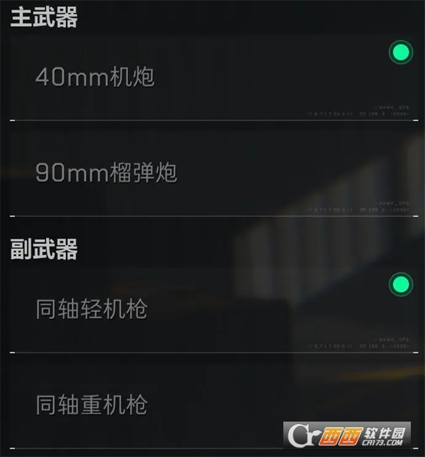 其中副武器的同轴机枪有轻机枪和重机枪两种选择,和之前介绍的坦克副武器性能基本一致,这里不再重复介绍,轻机枪射速更快,但射程近且伤害相对较低,重机枪射速较慢,但射程远且单发伤害相对更高。