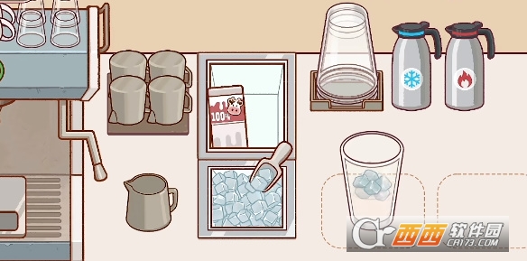 4、大量的互动式玩法,半自动咖啡机等设备能选择使用,并提供牛奶和冰块等物品,制作玩法更加的丰富。