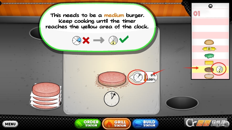 A:可优先处理头顶耐心条较短的顾客,避免他们离开。同时加快制作速度,比如提前烤好几个肉饼备用,配料按常用顺序摆放,减少拿取时间,慢慢就能提高效率。