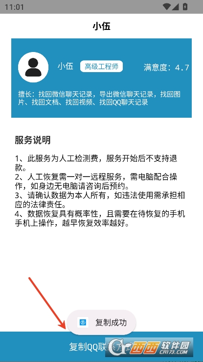 小鹏数据恢复app最新版官方下载是一款数据恢复处理官方软件,支持QQ聊天记录,PPT文档,PDF文档 ,Word文档,QQ微信图片,视频等多种类文件修复与恢复。内置专业的高级工程师,擅长找回微信聊天记录与导出,可以通过平台进行在线复制联系方式进行联系预约,同时提供详细的服务介绍与说明,满足不同用户的使用需求。