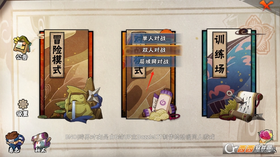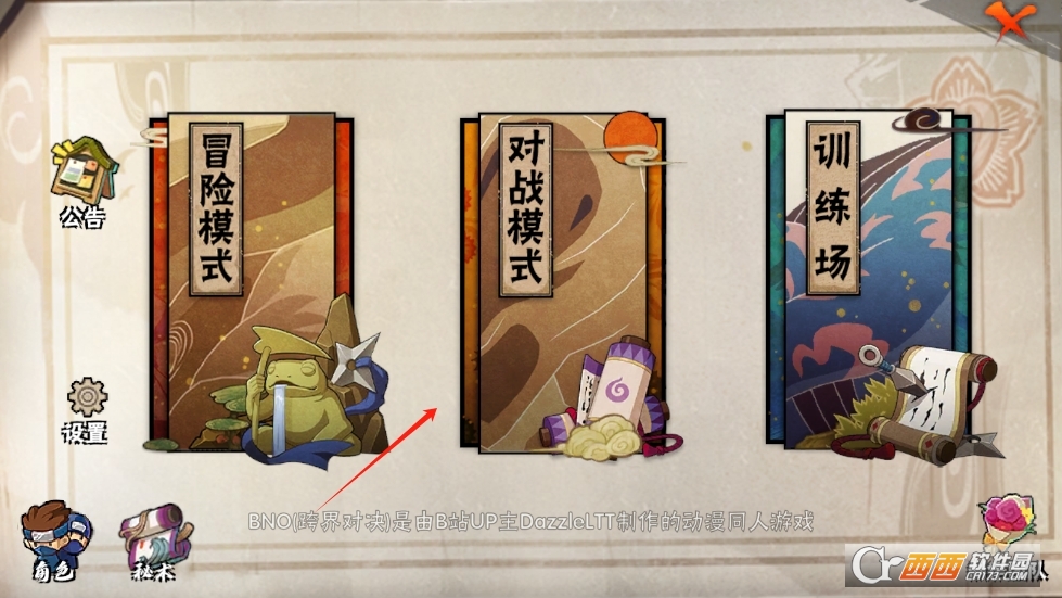bno跨界对决是B站UP主DazzleLTT制作的动漫同人游戏,集合了火影、海贼、死神三大民工漫的经典角色,开展动作大乱斗对决。