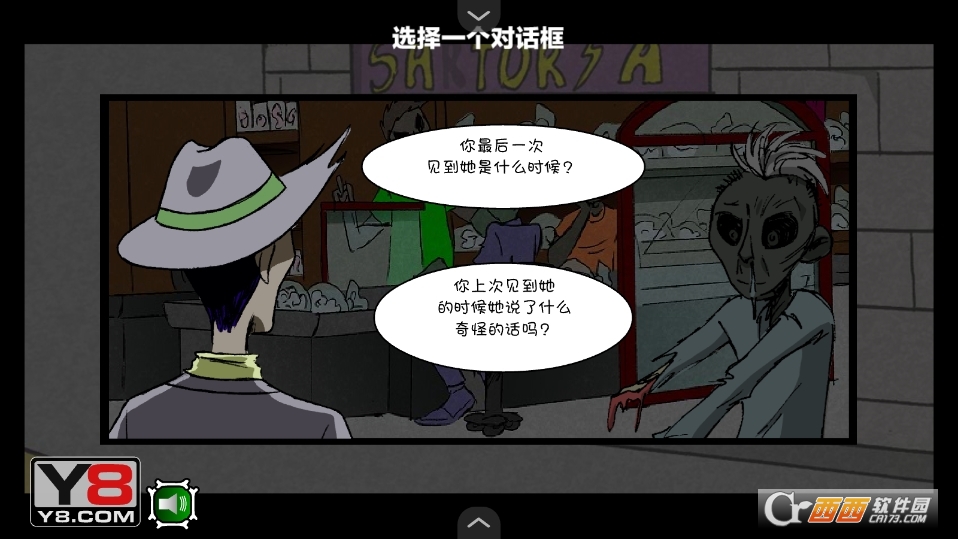 游戏以漫画分镜形式推进,画面风格暗黑且细腻,僵尸角色保留腐烂特征但眼神有情感(如疑惑、坚定),场景涵盖僵尸聚集的酒馆、废弃实验室等,每个场景都有隐藏细节(如墙上的报纸暗示世界观)。