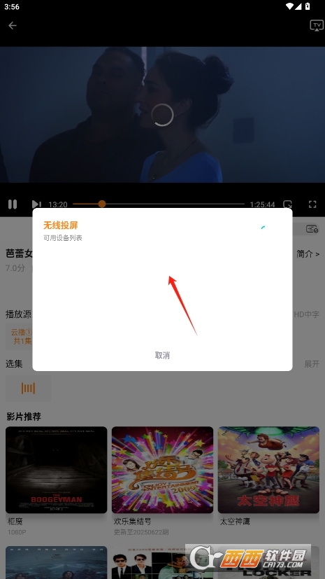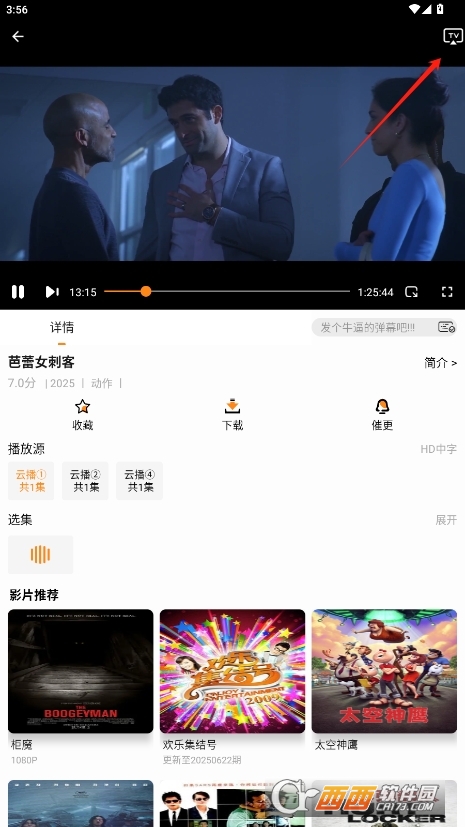 找到资源之后点击进去开始播放,在播放界面点击右上角的小电视按钮进行投屏