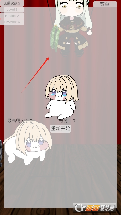 小心天上的睦会不断丢黄瓜砸你,被砸中就直接gameover了
