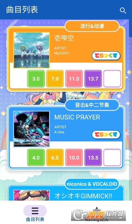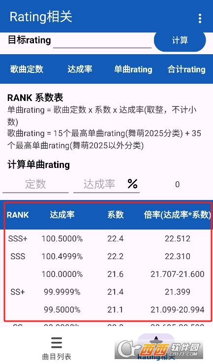 Rating计算功能:依据玩家的游戏成绩、完成的谱面难度等多维度数据,精准计算玩家的Rating值。该值动态反映玩家在游戏中的综合水平,随着玩家游戏表现的提升或下降而实时变化。玩家可随时查看自己的Rating历史曲线,了解自身游戏水平的发展趋势,为自我评估和提升提供量化指标。