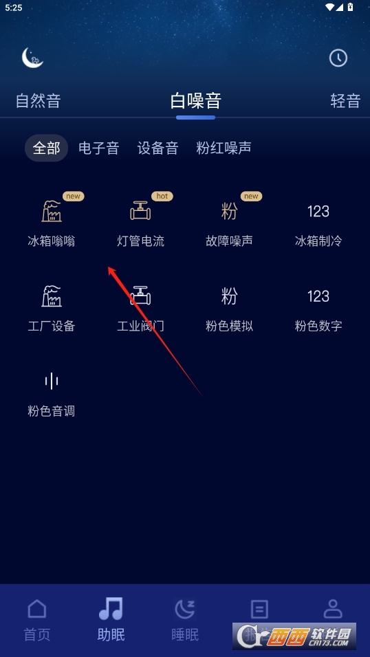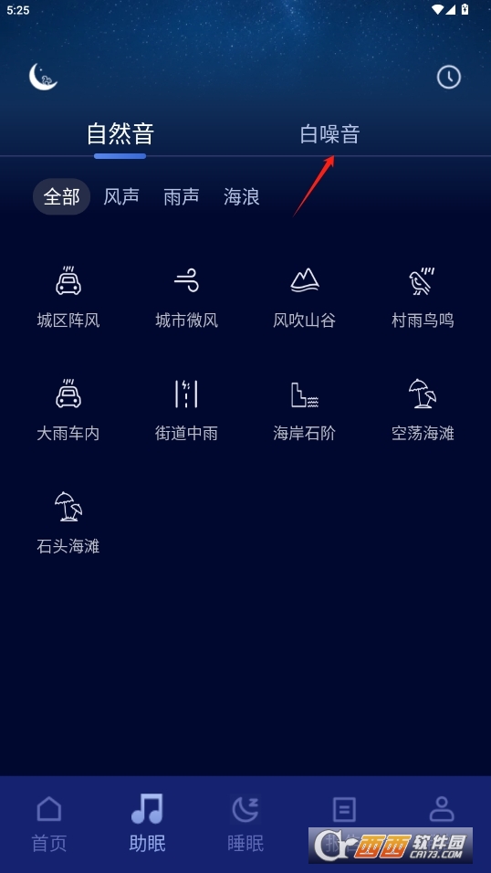 在白噪音列表中挑选收听你喜欢的白噪音即可