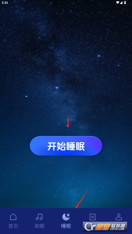 想要检测睡眠数据,先点击主页下方的睡眠按钮,然后点击开始睡眠