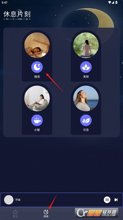 主页下方第二个版块是休息,你可以在准备休息的时候,选择对应的休息方式
