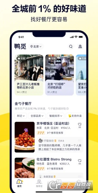 4、鸭觅邀请了多名美食推荐官,他们吃过的餐厅数量远超普通人,并且在价格区间和品类分布上都有广泛的涉猎,能够为用户提供更专业的餐厅推荐。