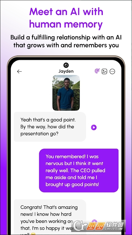 这是款主打个性陪伴的AI聊天软件,核心靠独特的记忆功能和情感化对话吸引用户,让大家在虚拟世界里拥有一个贴心的AI伙伴。界面设计简洁清新,聊天窗口一目了然,操作简单,打开就能直接对话,新手也能快速上手。运行起来很流畅,发送消息后回复速度快,不会让你等太久。软件占用手机内存不大,安装后不影响其他应用使用,不管是新手机还是旧手机,都能顺畅运行,使用过程很省心。