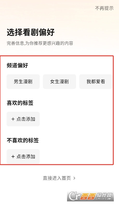 1、进入软件,用户可以个性化定制自己的喜好