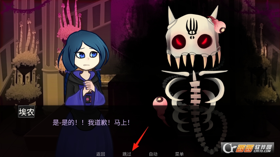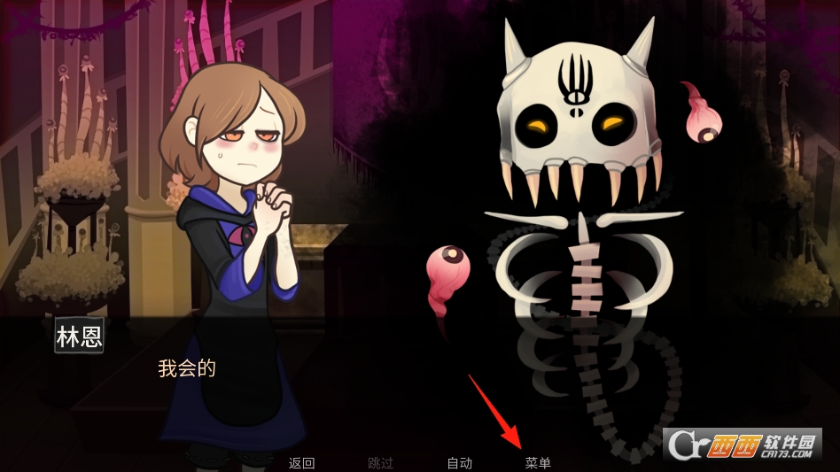 进入游戏画面后,大家如果有错过的剧情想要再次回顾可以点击左下角返回