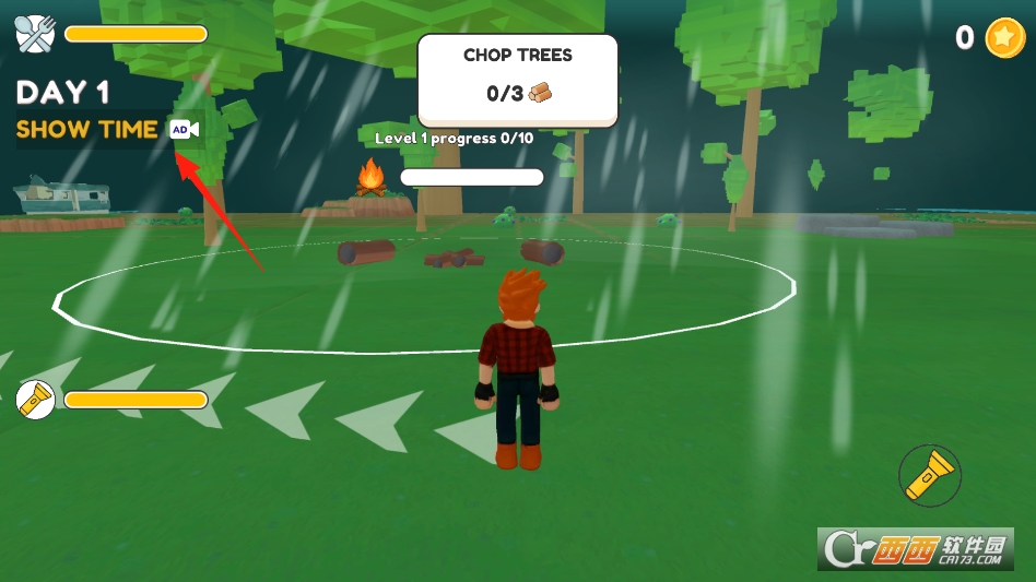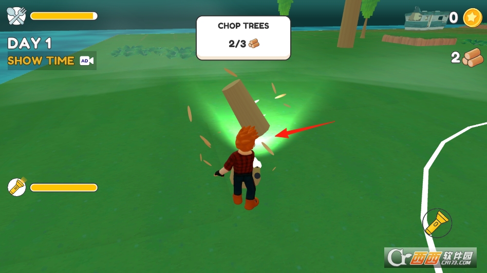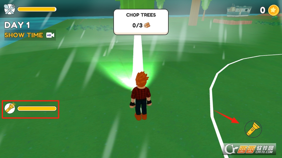 主打玩法是白天筹备、夜晚求生。白天在森林里探索,收集木头、石头等材料,建造能遮风挡雨的庇护所。利用材料制作斧头、弓箭等工具,狩猎小动物获取食物,保证自己不挨饿。