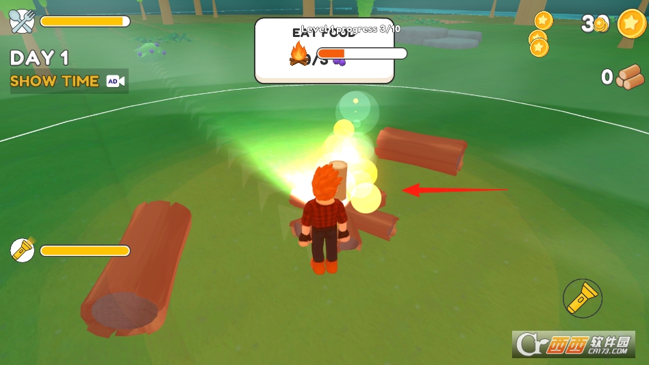 将获得的木材交到篝火处即可进行升级