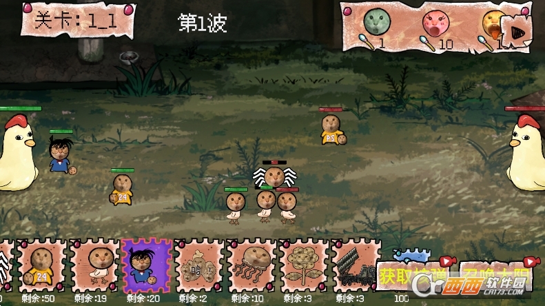 3、魔性画风独特,视觉新颖:采用极具特色的魔性恶搞画风,圆头猫角色形象设计夸张可爱,动作表情搞怪逗趣,与敌人战斗时的画面充满戏剧性与趣味性。这种独特画风区别于传统策略塔防游戏,为玩家带来全新的视觉冲击,在紧张战斗之余增添不少欢乐氛围。