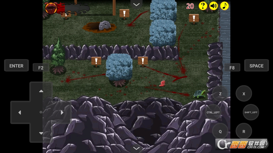 需要穿越山上丛林中的快乐营地,一路上会遇到各种障碍,比如围栏、河流、高地等。利用不断解锁的能力,摧毁前进道路上的一切受害者,吃掉所有生物,完成冒险。
