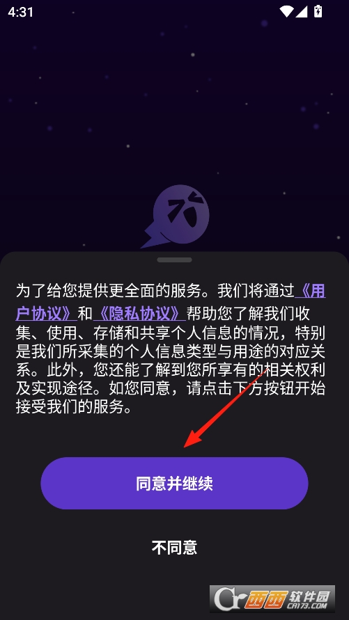 首次使用软件进入后点击同意条款