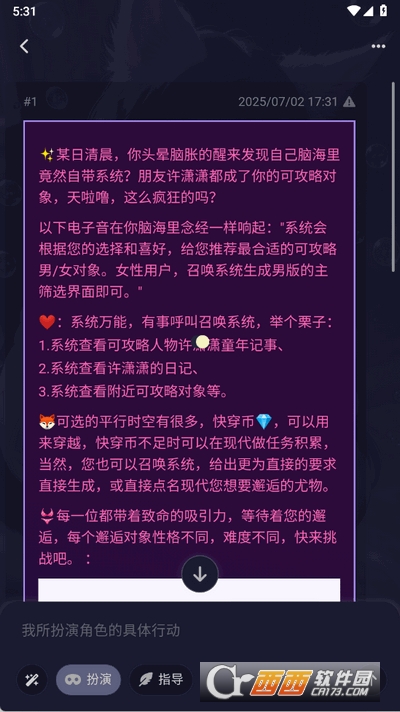 开放式剧情引导:不同于固定剧本的聊天,AI会根据用户的回应灵活引导剧情走向,用户的每一句话都可能改变聊天的发展方向,充满未知和趣味性。