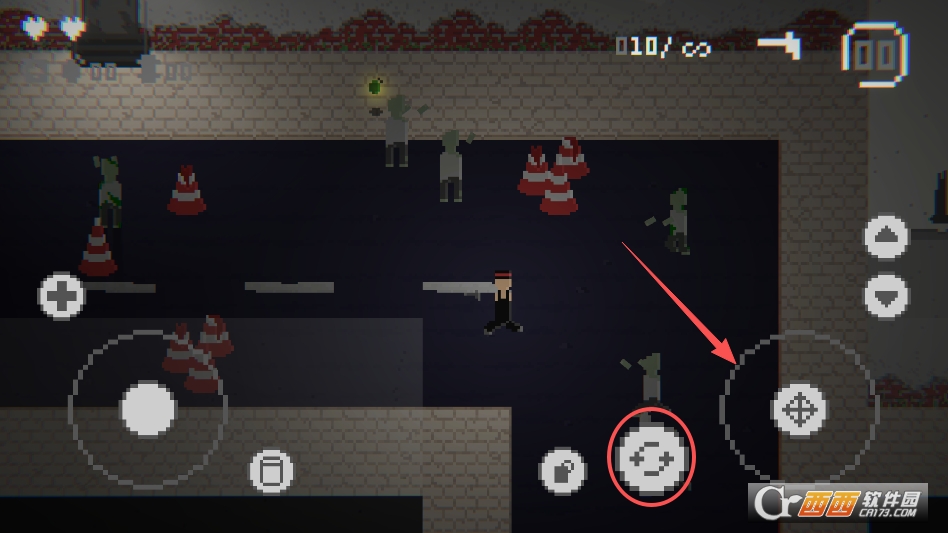 右侧可以控制开火方向,主角会自动开火