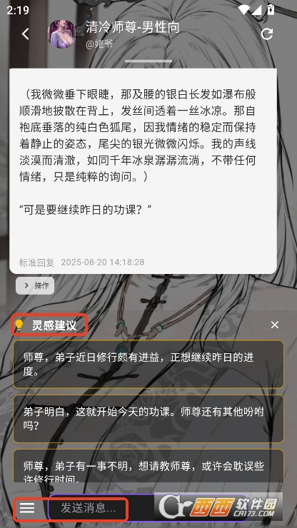 4,使用自定义文本或者灵感回复与AI角色展开智能对话