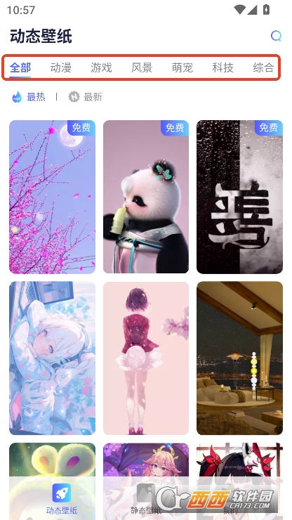 精细化分类体系:不仅按壁纸主题(如动漫、风景)分类,还结合热度、更新时间、付费属性(免费)细化筛选维度,满足不同用户的精准查找需求。无论是追热门潮流,还是找最新资源,或是只想要免费壁纸,都能快速找到对应内容。