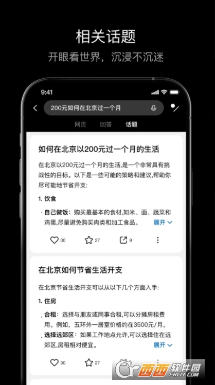 2、“个性化搜索定制”贴合个人习惯:软件支持个性化搜索定制,用户可设置搜索结果排序方式、内容展示形式,还能设置关注领域,让搜索结果更符合个人兴趣与使用习惯。