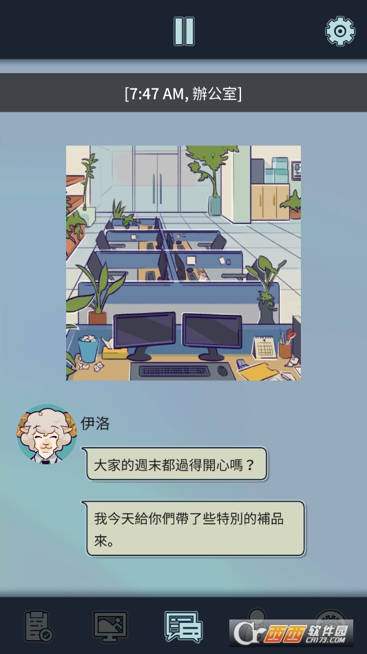 核心是“即时通讯互动选择”,剧情推进中会弹出对话选项。你可以选温柔鼓励的回复,也能选调皮调侃的内容,不同选择会影响角色对你的态度,比如选关心同事的回复,对方下次会更主动和你分享小事,让故事有了专属你的小走向。