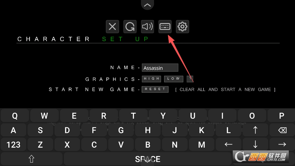 呼出虚拟轮盘和菜单后,点击菜单上的键盘按钮,将轮盘切换成键盘样式