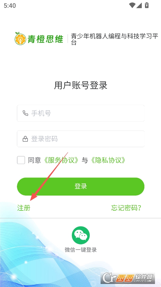 首次进入软件提示需要登录,先点击左下角的注册按钮