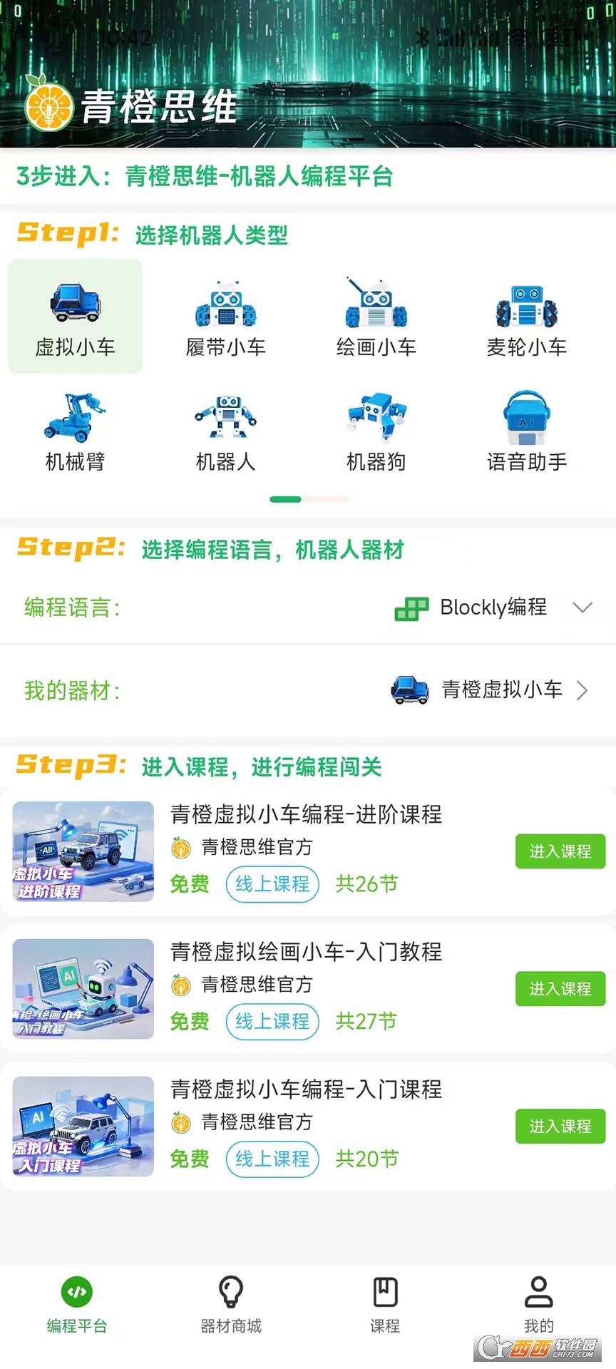 青橙思维官方正版APP是“青橙思维”平台推出的手机应用,专门服务于青少年科技教育。不管是想玩可编程机器人,还是想学编程知识,打开这个APP都能满足,它就像个“科技学习小助手”,把机器人控制和编程学习整合到一起,用起来很方便,非常适合聪明的小朋友们使用学习。