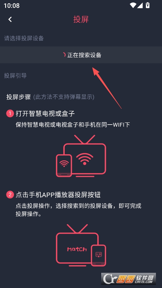 搜索到同wifi下的电视设备,连接后即可开始投屏