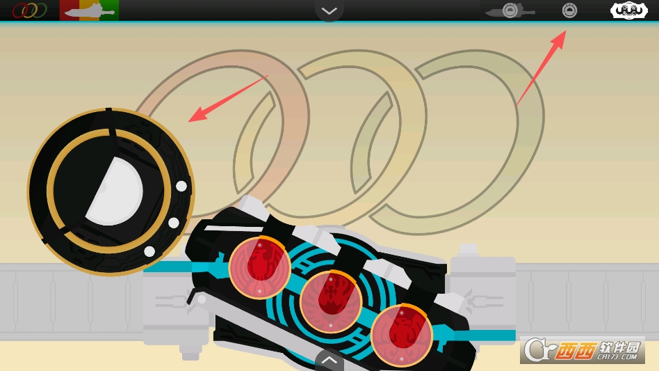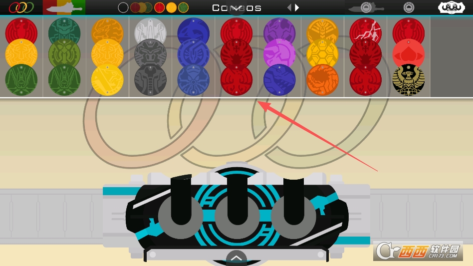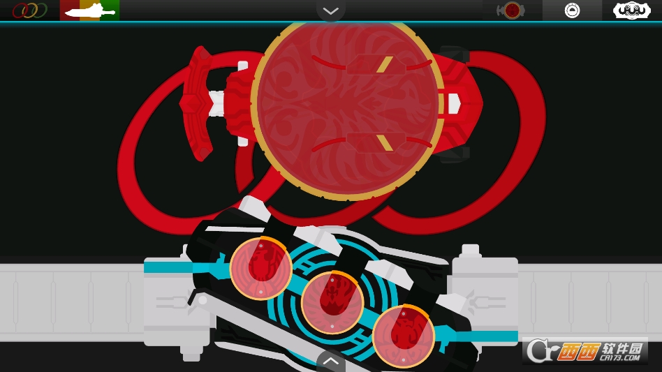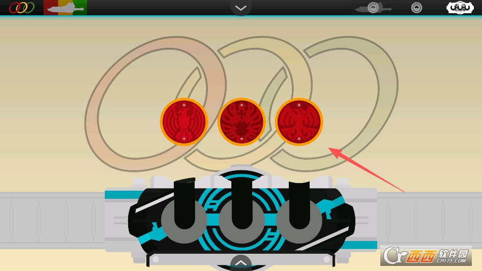 第一个核心玩法是“基础变身模拟”,还原欧兹经典变身流程。先点击屏幕上的硬币(比如鹰、虎、蝗三种硬币),把它们“插入”腰带插槽,然后滑动腰带中间的核心转盘,转盘转动到对应位置后,就会触发变身音效和动画,完成鹰虎蝗联组的变身,整个过程跟正片里的操作顺序完全一致。