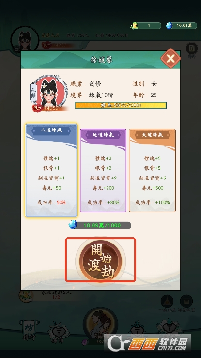 1,当修为积攒满了之后就可以选择突破方式进行渡劫