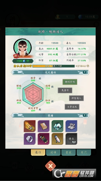 角色养成发展:能招募具有不同特色的弟子,安排他们修炼功法、下山历练来提升实力。弟子的资质和六维数据(根骨、悟性等)可借助丹药提升。同时,玩家还能自由选择自身的修炼方向,或通过游历触发奇遇,打造个性化修仙路径。