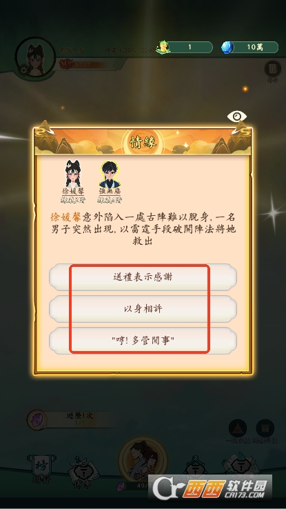 丰富剧情抉择:以文字叙事为主,每次选择都可能触发不同剧情走向,影响角色命运与宗门兴衰。如在下山巡访、秘境探索时,会遇到不同人物和事件,可能结缘道侣、收获异宝,也可能遭遇危机,让游戏充满未知与惊喜。