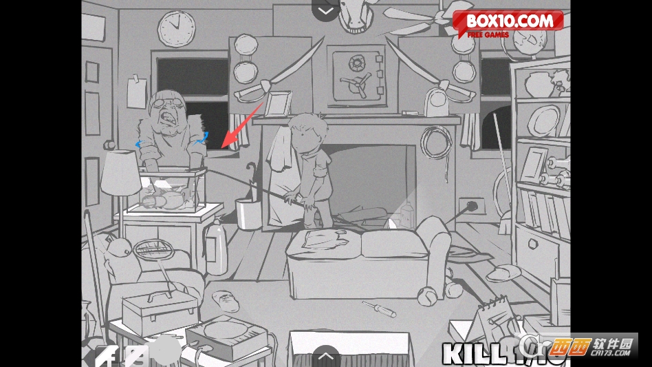 第一个最大亮点是“十种重击方法带来的探索乐趣”。不像很多游戏只有固定几种攻击方式,这款游戏光重击小偷的方法就有十种。你得一个个去试,可能点击某个不起眼的物品,就会触发意想不到的重击效果。比如点击墙上的挂画,挂画会掉下来砸中小偷;点击水龙头,水流会喷向小偷。这种探索的过程,比单纯的攻击更有乐趣。