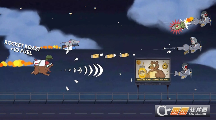 游戏里的战斗特别爽快,主打多巴胺式的快乐体验。你要让这只喷气动力熊翱翔天际,释放内心的狂野。能直接撞击敌方飞机,把它们撞得七零八落;也能用喷气火焰,把敌方飞行员在空中烤熟;还能发出震天怒吼,把敌人从座舱里直接吓飞,场面又荒诞又刺激,感兴趣的话就来西西下载吧。