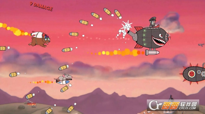 游戏画面风格超有特色,灵感源自1940年代的手绘艺术,每一帧都是手工绘制的。不管是熊熊的形象,还是敌方飞机的设计,都充满了复古卡通的感觉。熊熊毛茸茸的质感画得很细腻,敌方飞机的细节也很丰富,看起来就像从老动画里走出来的一样。