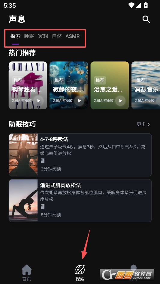 点击下方探索版块,可以找到各种类型的音声免费播放