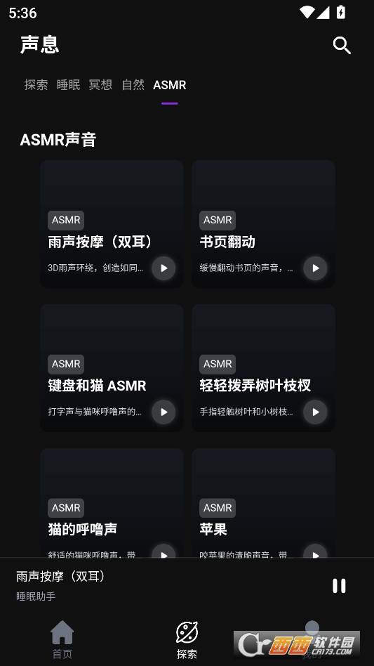 声息安卓版是一款资源超丰富的手机音乐资源库,喜欢听各类音频的小伙伴一定要试试。它里面的音频类型特别全,不管你想找舒缓的自然声音,还是助眠的冥想音乐,又或是放松的ASMR、专业的睡眠音频,打开软件都能轻松找到,再也不用在多个平台来回切换找资源,一个软件就能满足你的需求。