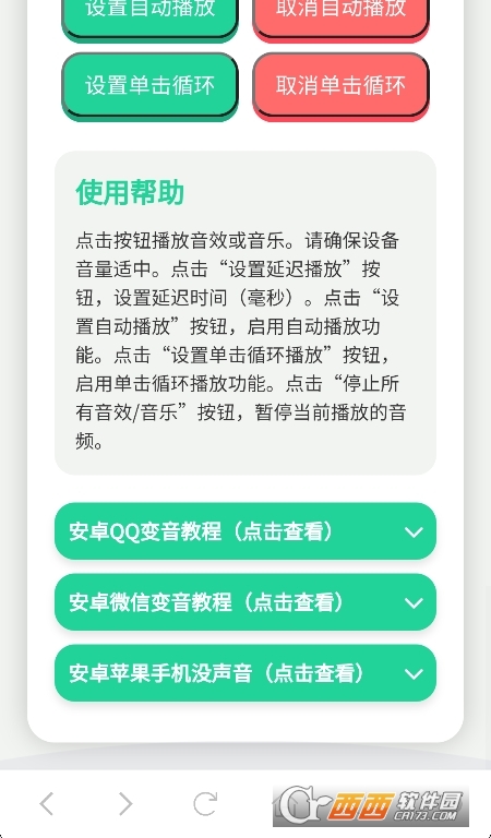 操作简便且门槛低,适配全年龄段用户:软件界面采用“一键播放”设计,点击语音/音效图标即可即时播放,无需跳转多页面;支持“快速收藏”,喜欢的内容点击星标即可加入“我的收藏”,后续播放无需重新查找;播放时可调节音量、设置循环模式,操作逻辑简单直观,即使是新手用户也能1分钟内上手,避免“操作复杂、学习成本高”的问题。