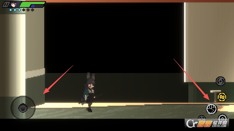 进入游戏后可以看到左右两侧的虚拟按钮可以控制操作星见雅