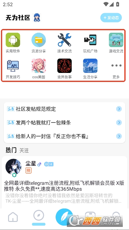 无为社区app安卓版免费下载是一款应用软件资源分享社交平台,内置实用软件,资源分析,技术交流,玩机广场,游戏交流,开发技巧,cos美图,生活分享等多个板块,能够获取最新的发布帖子与交流文章,还支持自行发布赚取积分。提供恐怖/解谜,休闲/养成等题材安卓游戏资源,一键下载就能开始游玩 ,满足不同用户的资源获取需求。