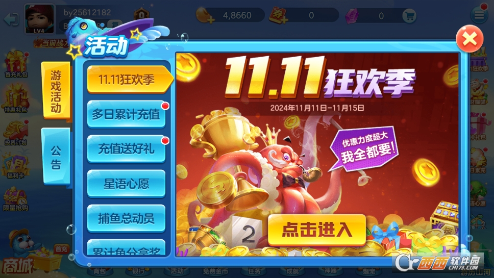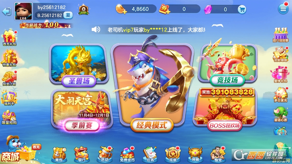 3、竞技场玩法: 在规定时间内报名参赛,根据捕获鱼的倍数总和计算积分,增加了玩家之间的互动与竞争。