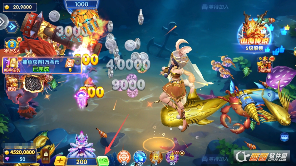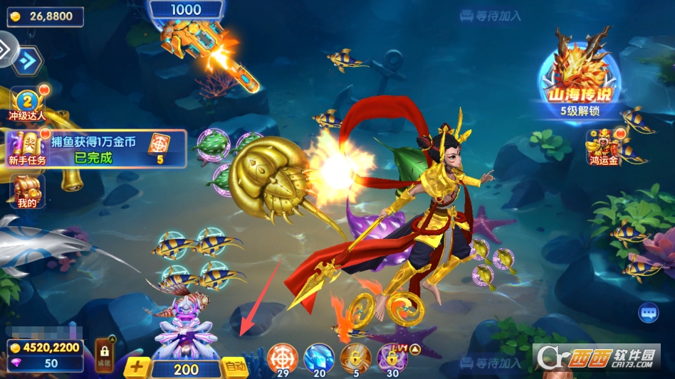 进入渔场之后找到我们的炮台,点击炮台右侧的自动按钮