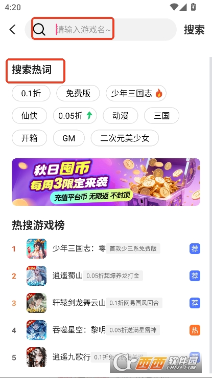 大虫游戏盒app官方最新版免费下载是一款专为安卓用户打造的福利游戏平台,每日上新热门精选游戏,各种新游,0.1折,变态版,无限送等标签推荐,还能根据三国,仙侠,传奇,魔幻等题材进行分类筛选,支持游戏名与热词快速搜索,点击感兴趣的游戏就能直接下载游玩,还能领取平台特供免费礼包与648充值代金券,享受丰富的福利礼包内容。