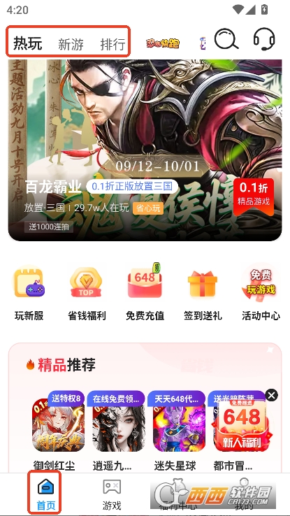 超低价游戏矩阵:打造 0.05 折、0.1 折等极致折扣游戏专区,涵盖《天堂魔狱》《逍遥蜀山》等 5000+款作品,多数游戏开局即送648礼包、满级VIP与千元充值卡。